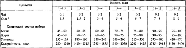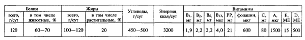 водный спорт, лыжные прогулки, походы и др.), калорийность рациона также