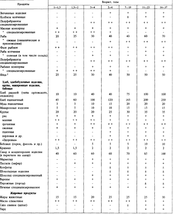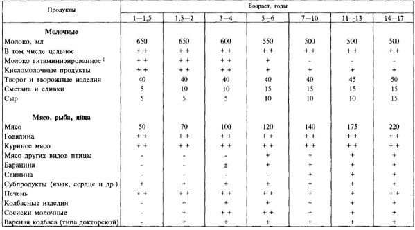 сыр — 50 г, фрукты свежие — 100 г). Для каждой возрастной группы школьников
