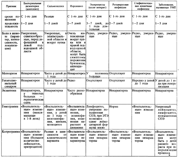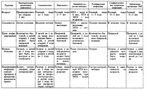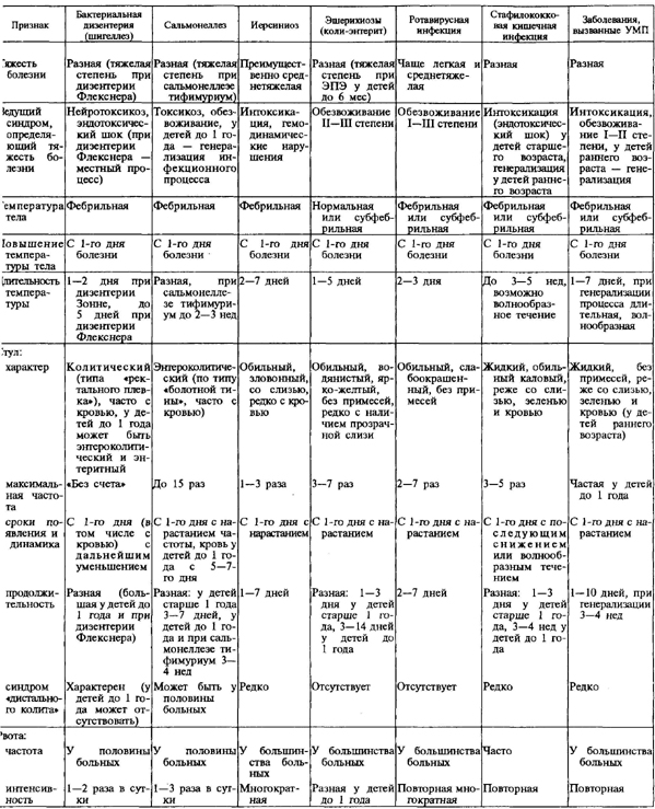Основные дифференциально-диагностические признаки острых кишечных инфекций у детей