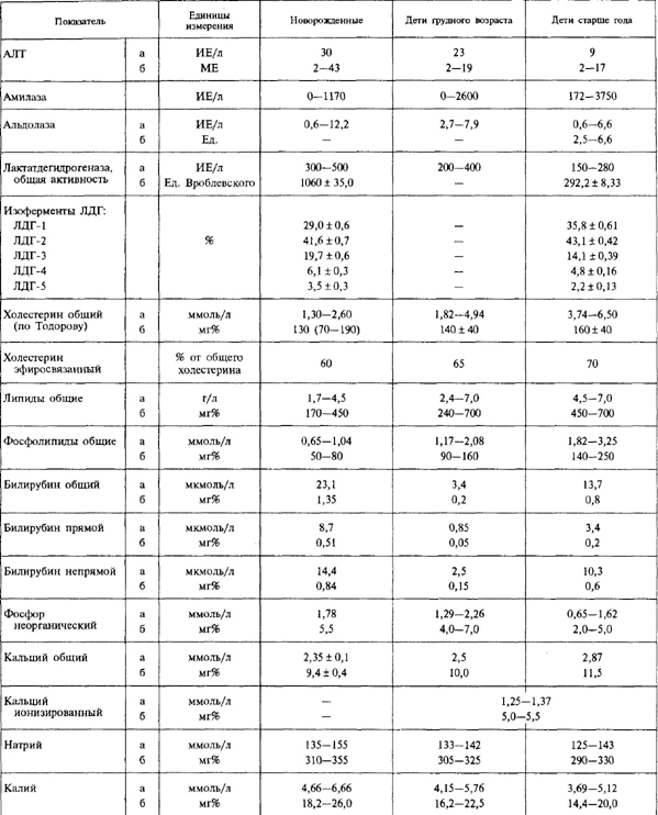 Таблица 24 Некоторые биохимические показатели сыворотки крови * В строке «а» — единицы СИ, в строке «6» — единицы, подлежащие замене. ** 1ИЕ/Л — активность фермента, катализирующего превращение 1 мкмоля субстрата в 1 мин/л в стандартных условиях. Таблица 25 Содержание тестостерона в сыворотке крови у мальчиков (Жуковский М. А. и др., 1989)