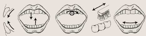 Чистка зубов зубной щеткой Нижние зубы следует чистить в том же порядке. Особого внимания заслуживают зубы, расположенные в конце зубного ряда: на щечной поверхности этих зубов бывает много налета. Зона нижних резцов тоже заслуживает внимания: там могут откладываться зубные камни. Неправильно расположенным зубам приходится уделять дополнительное внимание: скученность зубов создает условия для скопления остатков пищи, а значит, и для развития кариеса. Чистка зубов должна заканчиваться массажем, который осуществляется при сомкнутых зубах, круговыми движениями зубной щетки с захватом десен. Если человек чистит зубы только горизонтальными движениями и только с наружной стороны, применяя жесткую щетку, то через несколько лет горизонтальное стирание эмали ему обеспечено, независимо от ее исходной прочности. Подсчитано, что при эффективной чистке зубов щетка совершает не менее 400 движений — скребущих, подметающих, кругообразных. Кое-что о зубной щетке Первые щетки появились в Китае приблизительно тысячу лет назад. Впервые фабричный выпуск зубных щеток был налажен в Германии в конце XVII века. Синтетическую щетину стали изготавливать в конце 40-х годов XX века. На Руси зубы долго чистили полотняными тряпочками. Появление зубных щеток в нашей стране приходится на период реформ Петра I. За последние сто лет внешний вид зубной щетки преобразился. Современная зубная щетка имеет красивый дизайн и комбинированную ручку. Зубная щетка для детских зубов должна быть мягкой, с искусственной щетиной и гибкой изогнутой ручкой. Головка зубной щетки по длине должна соответствовать размерам 2-3 зубов. Щетина может иметь цветной индикатор времени пользования, действующий три месяца. Пучки щетины не должны быть расположены слишком часто. На головке щетки некоторые щетинки могут быть более длинными, они образуют так называемый силовой выступ для очищения труднодоступных участков зубов. Выпускают щетки со звуковым таймером, установленным на 2 минуты. Зубная щетка — предмет индивидуального пользования, она должна храниться в стакане головкой вверх. Есть специальные дорожные щетки с ручкой в виде футляра. Этот футляр предназначен только для ее перевозки. Изготавливаются сувенирные зубные щетки для детей с ручкой в виде игрушки. Для любителей технического прогресса продаются электрические зубные щетки, чаще такими щетками пользуются мужчины. В таких щетках головка сама делает круговые движения. Сконструирована музыкальная зубная щетка. При чистке зубов такой щеткой звучит мелодия. Еще одним современным достижением является гидравлическая щетка, которую подключают к водопроводу. Вместо обычной щетины — тонкие струйки воды, которые смывают остатки пищи и массируют десны. Зубную щетку следует менять каждые 3 месяца. Не надо пользоваться чужой щеткой, на ней могут быть микроорганизмы, вызывающие кариес. Если вы забыли свою зубную щетку, надо прополоскать рот после еды и воспользоваться жевательной резинкой с ксилитом или фтором. При жевании резинки выделяется дополнительное количество слюны, смывающей остатки пищи. Жевать ее следует не дольше 5-7 минут. Как выбрать пасту Чем только не чистили зубы в старину! Для этого применяли золу, кусочки угля, поваренную соль, соду, мел, толченую скорлупу яйца с медом. Сейчас глаза разбегаются при виде кр