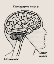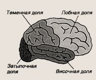 Являясь носителем всей информации, материальным субстратом, обеспечивающим многочисленные функции организма человека, головной мозг имеет очень сложное своеобразное строение. Он представлен двумя полушариями — правым и левым. Площадь поверхности полушарий значительно больше, чем видимая при обзоре, так как поверхность мозга увеличена благодаря углублениям — бороздам. Борозды и щели покрывают всю поверхность мозга. Щели и глубокие борозды отделяют друг от друга доли мозга. Большая и очень глубокая продольная щель отделяет одно полушарие от полушарие мозга от другого. Менее глубокие борозды ограничивают извиты мозга, которые объединяются в отдельные доли. В каждом полушарии четыре доли: лобная, теменная, височная, затылочная. Анатомически доли полушарий зеркально одинаковы, но функционально значительно различаются. Внешне, видом сверху, головной озг похож на половинку ядра грецкого ореха. Верхний слой полушарий — это серое вещество, одержащее миллиарды нервных клеток. Оно называется корой головного мозга. В коре мозга представлены центры жизнедеятельности человека. Корковые центры обоняния, вкуса, зрения, слуха, чувствительности, движений находятся в обоих полушариях.